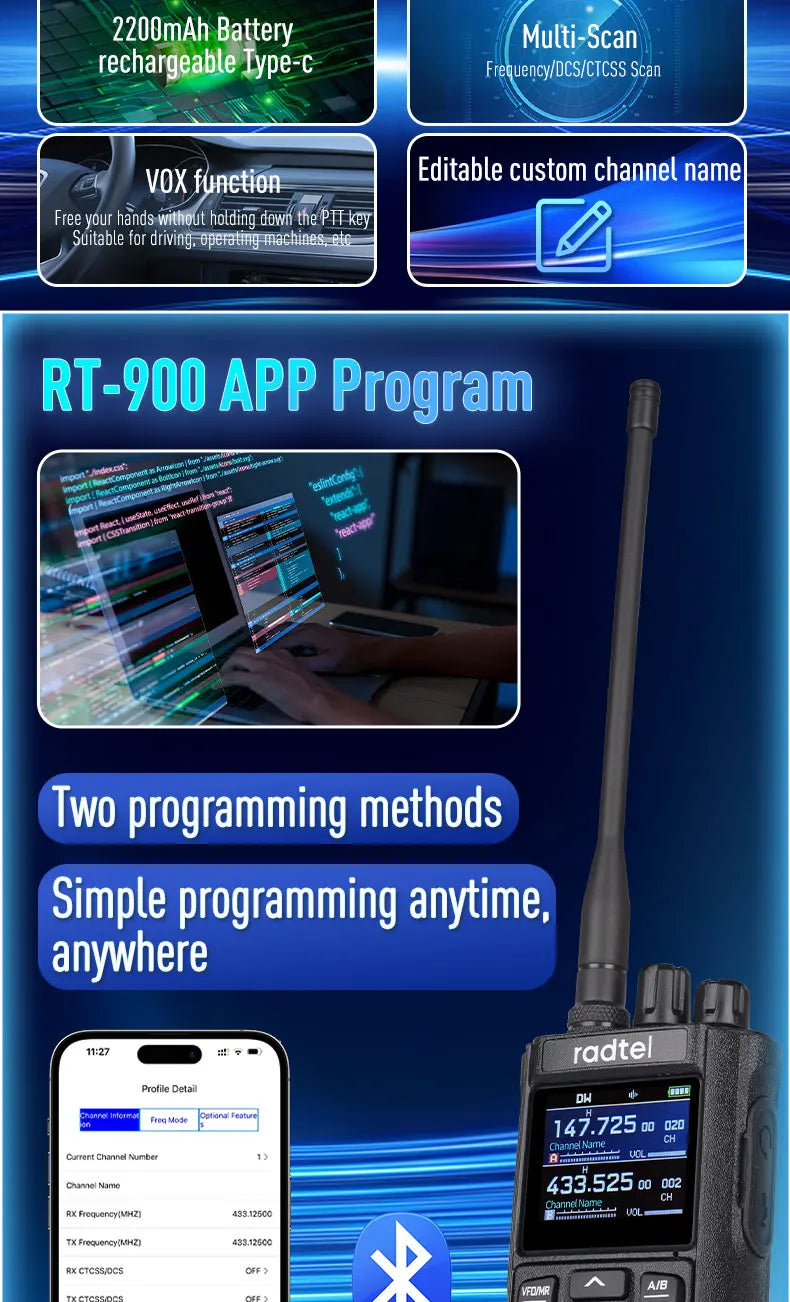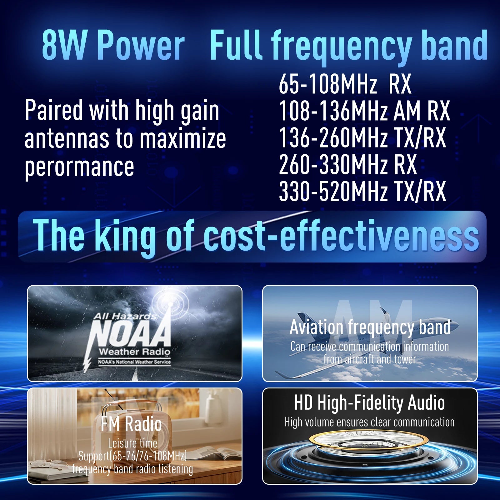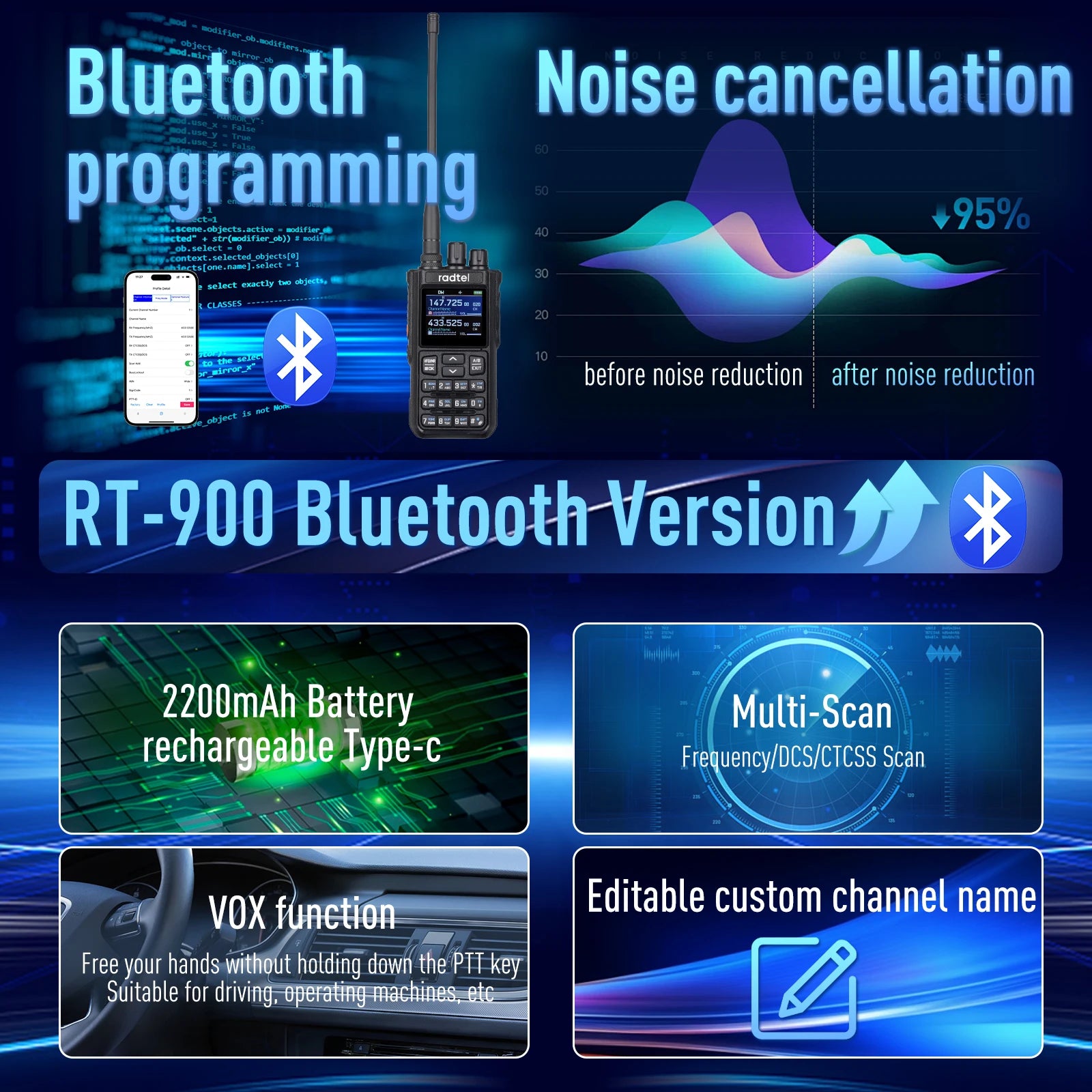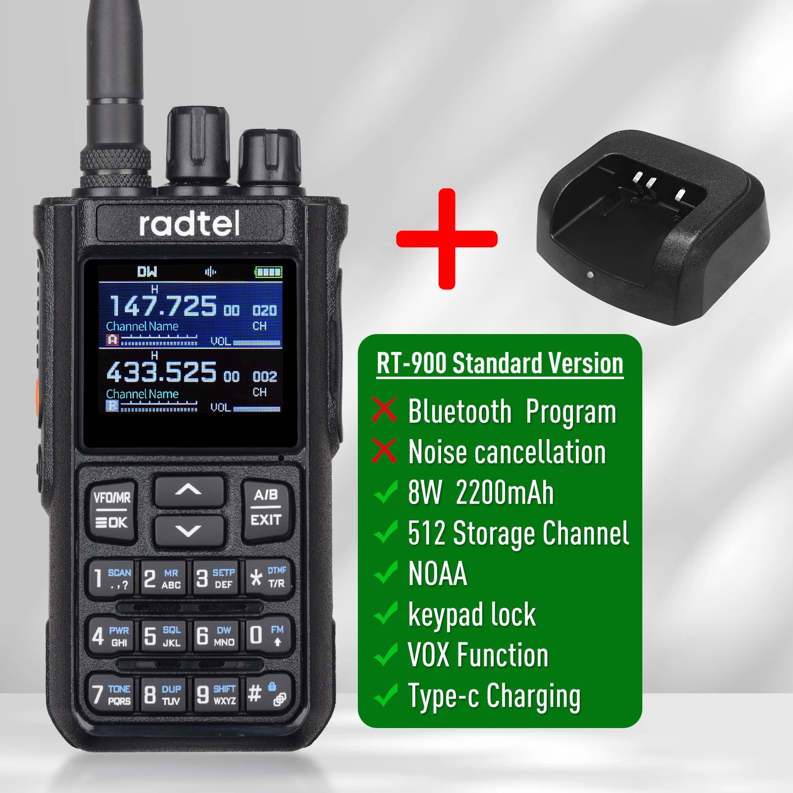 Radtel RT-900 Walkie Talkie with Charging Dock, 8W 512CH Air Band 2 Way Radio Full Band Amateur Ham Radio