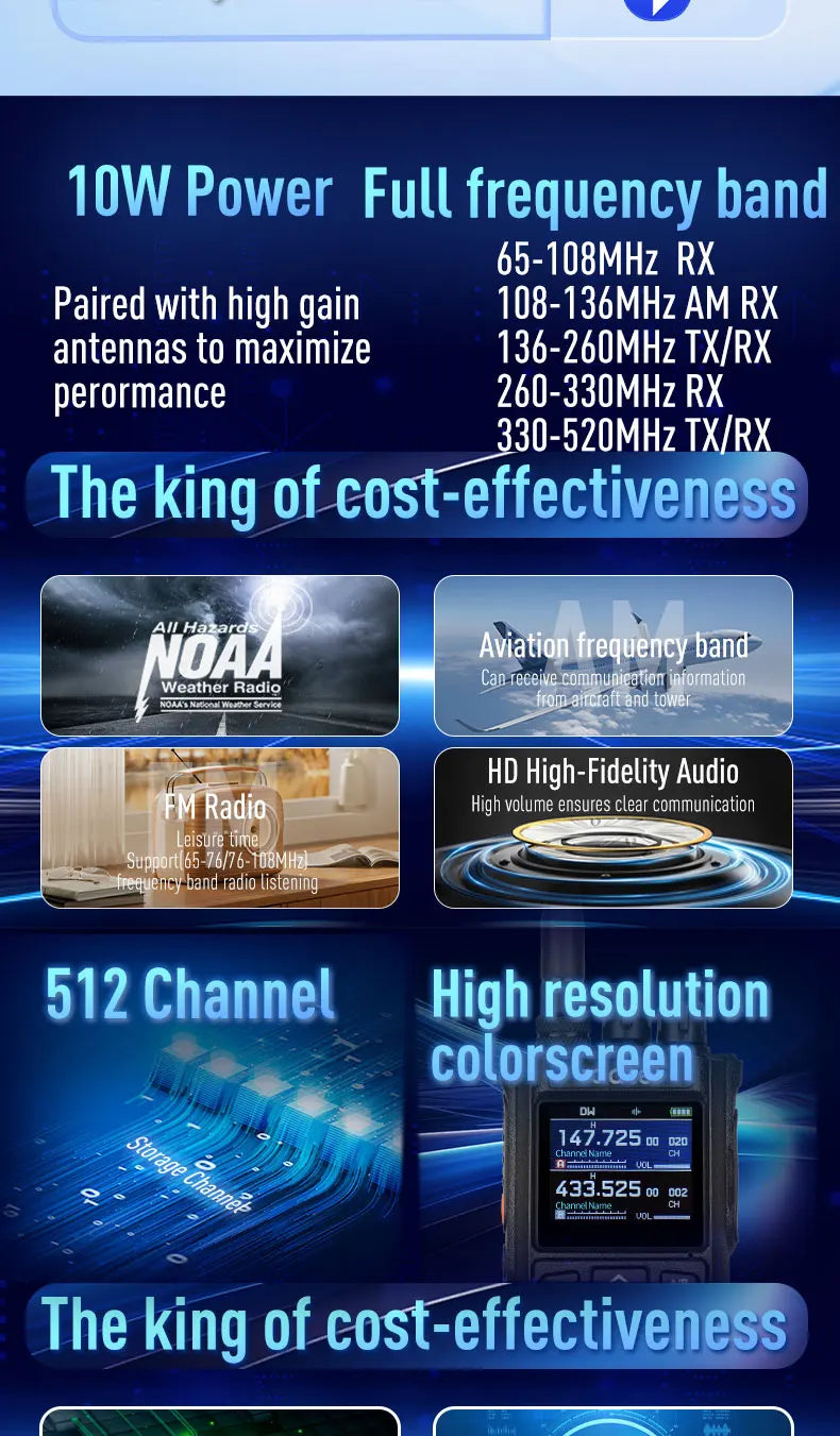 Frequency Range: 18-108MHZ TX/RX 108-136MHZ RX ,136-999MHZ TX/RX