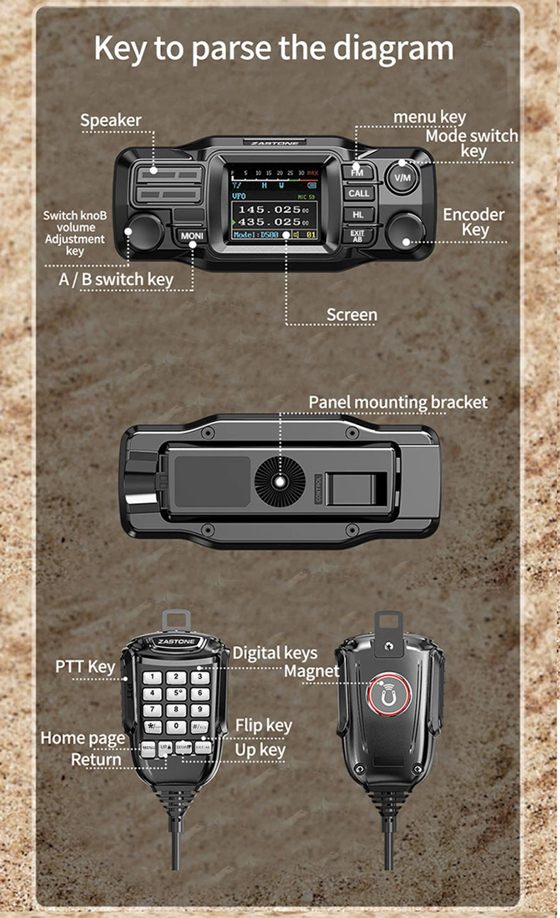 ZASTONE D500 25W High Power Mini Mobile Radio VHF UHF Dual Band DTMF Detachable Panel Transceiver