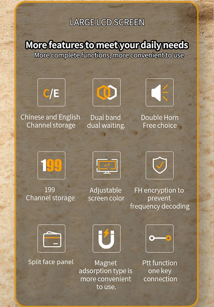 Auxiliary functions2: 130-179MHZ Mobile Car Radio